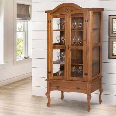 Cristaleira Madeira De Demolição Maciça Rustica Pé Luis Xv
