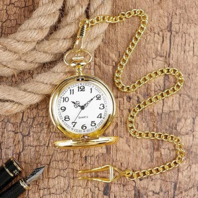 front page > Beleza > Relógio De Bolso Com Corrente Antigo Vintage Dourado Liso