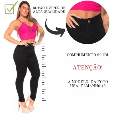 Calça Jeans Preta Feminina Super Lycra Skinny Cintura Alta
